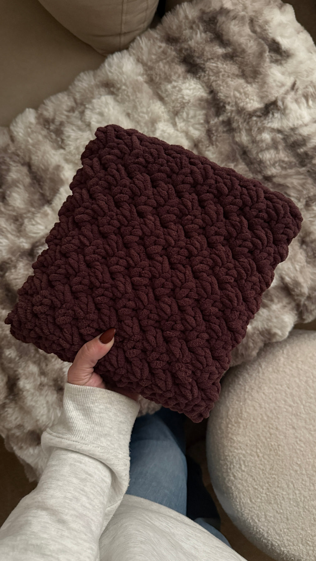 Cozy up during the fall weather with this beautiful pouch in dark brown. These are slightly different. in color. The new one in the first picture is beautiful !