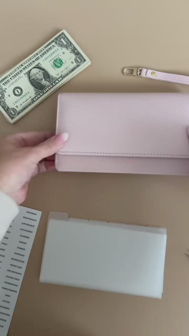 This wallet has a snap closure and envelopes to slide in the envelope, lots of cards slots, perfect to hold your money and personal items. Comes with the blank clear envelopes + a strap. You can also get the categories sticker sheet to use for your envelopes.