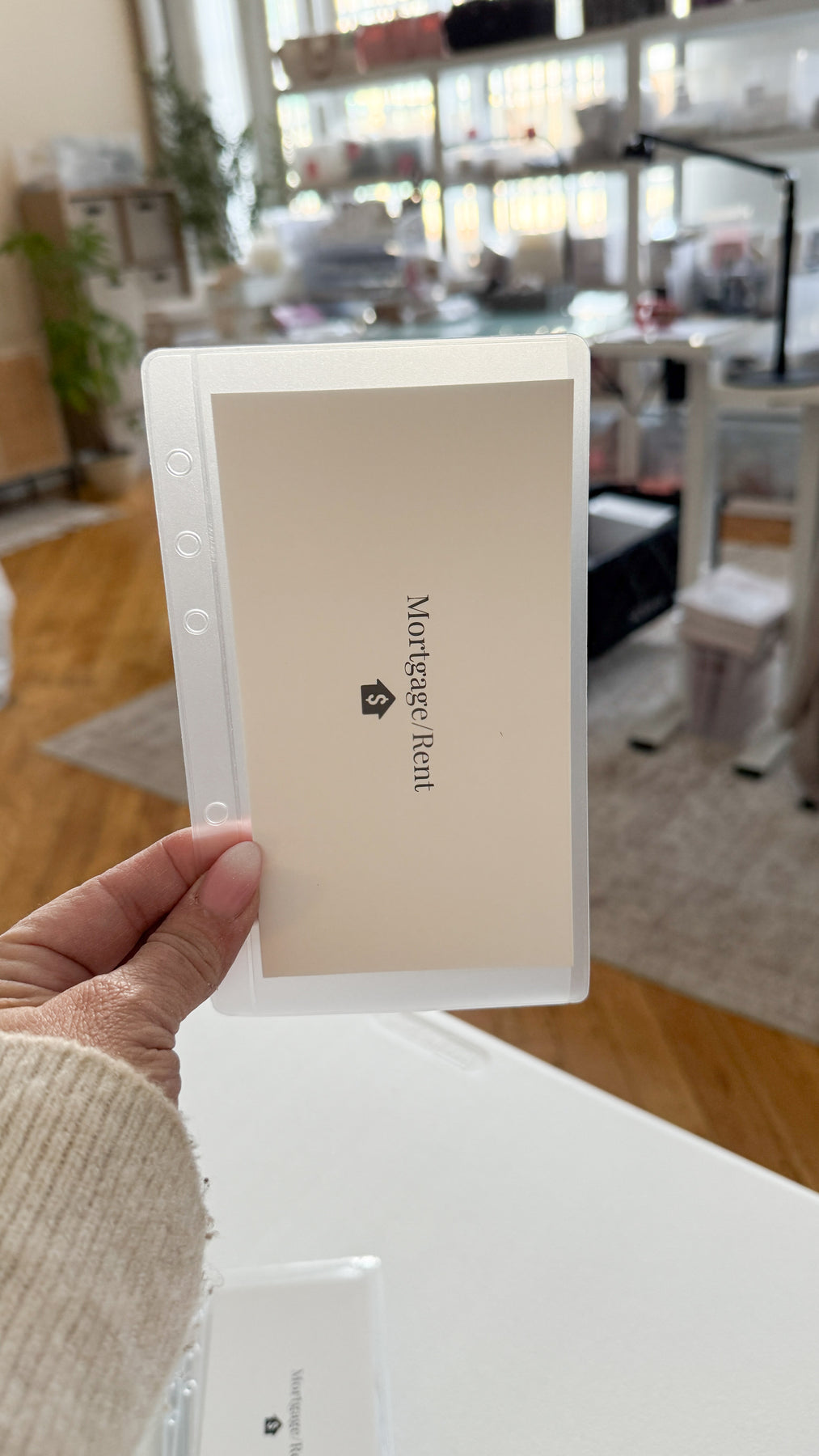 These are 18 sinking fund cards which is a thick card stock to slide in your envelopes. They will be used with the double pockets plastic.