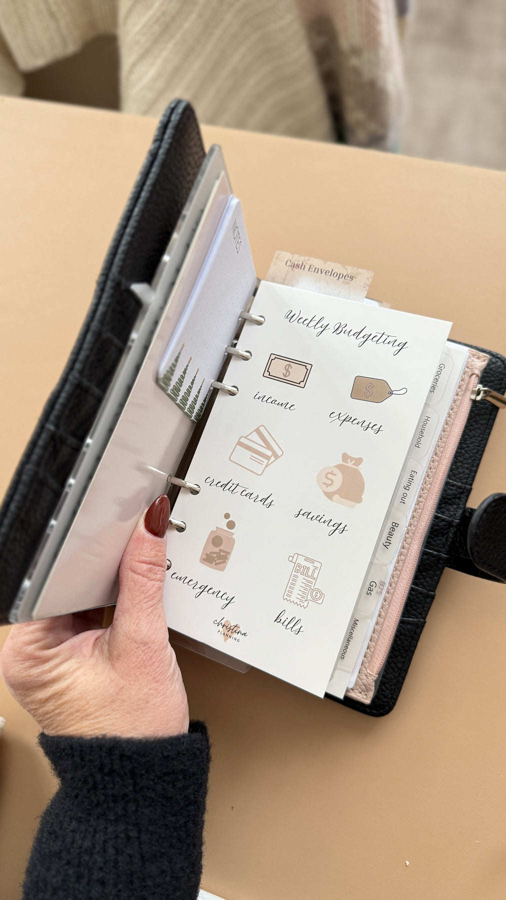 • Weekly Budgeting Dashboard – a simple space to review income, expenses, and cash envelopes