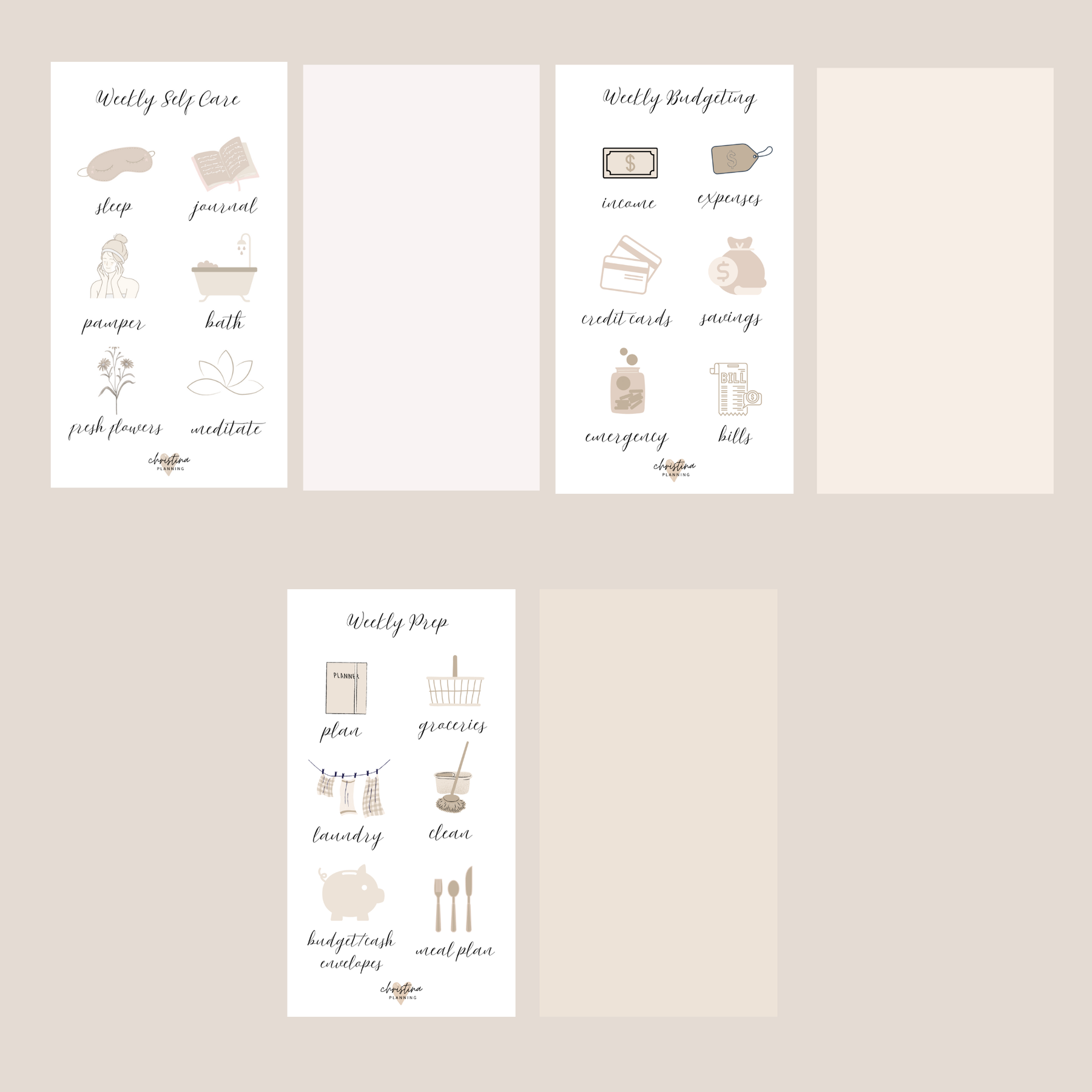 These dashboards are ideal for anyone who wants a calm, intentional weekly routine without complicated systems. Use them as part of your cash envelope setup, budget planner, or planning binder.